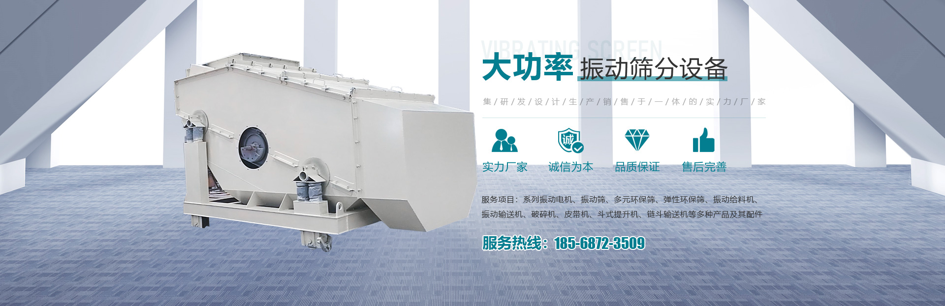 - 主要產品有系列振動電機、振動篩、多元環保篩、彈性環保篩、振動給料機、振動輸送機、破碎機、皮帶機、斗式提升機、鏈斗輸送機等多種產品